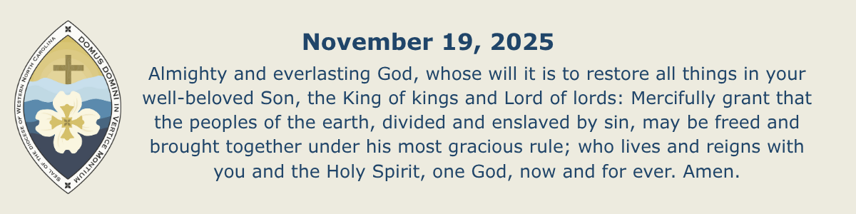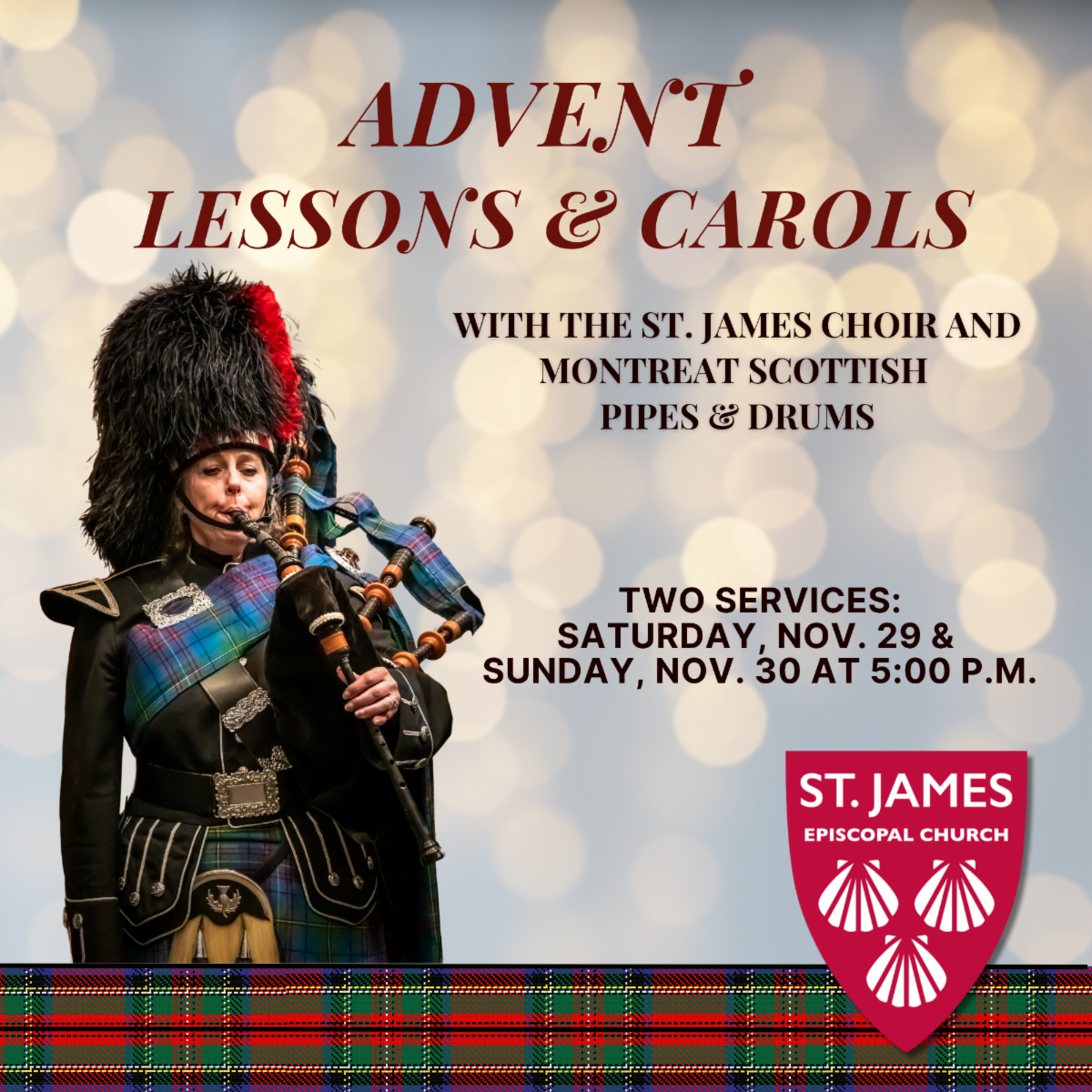 | | To submit an event, please review the submission guidelines and email event details and a photo for consideration to katie@diocesewnc.org. This space is reserved for diocesan, parish, and conference center events. | | Advent Lessons and Carols | Plan now to attend this breathtaking service, which is an Advent tradition at St. James! Two identical services are offered and will both feature the St. James Choir and Montreat Scottish Pipes and Drums. Director of Music Brad Gee will lead the choir in singing carols and anthems appropriate to the readings. Brennan Szafron will be the organist for the service. While no tickets are required, contributions of any amount are welcome and appreciated in support of the music ministry at St. James. Doors open at 4:00 p.m. | |