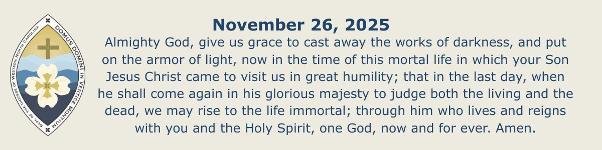| | To submit an event, please review the submission guidelines and email event details and a photo for consideration to katie@diocesewnc.org. This space is reserved for diocesan, parish, and conference center events. | | Advent Lessons and Carols | Plan now to attend this breathtaking service, which is an Advent tradition at St. James! Two identical services are offered and will both feature the St. James Choir and Montreat Scottish Pipes and Drums. Director of Music Brad Gee will lead the choir in singing carols and anthems appropriate to the readings. Brennan Szafron will be the organist for the service. While no tickets are required, contributions of any amount are welcome and appreciated in support of the music ministry at St. James. Doors open at 4:00 p.m. | |