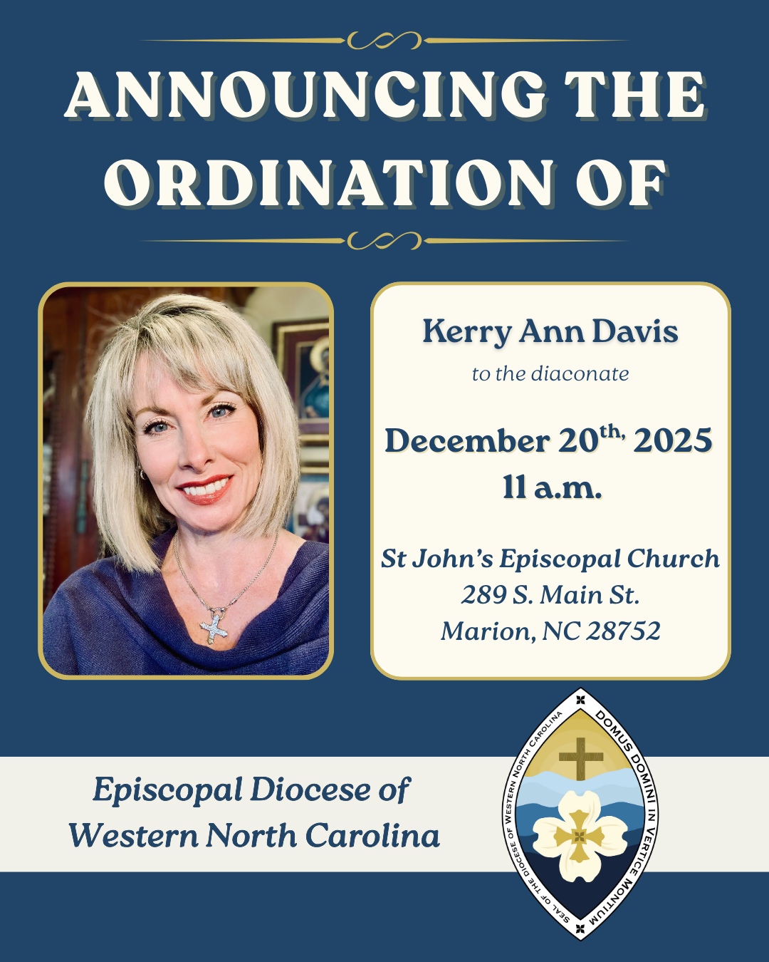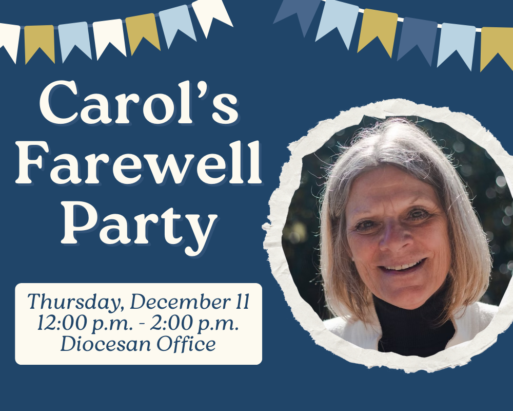 | | View the weekly checklist of important upcoming dates and deadlines for clergy, wardens, and staff. | | NOTE: The Diocesan Office will be closed Thursday November 27th and Friday November 28th for Thanksgiving. | Join us in wishing CFO Carol Tannenbaum farewell as she enters retirement and steps into the next chapter of her life. Drop in anytime between 12:00 p.m. and 2:00 p.m. to help us celebrate Carol's hard work in her role as CFO. Light refreshments will be provided. | Thursday, December 11th | 12:00 p.m. - 2:00 p.m. | Diocesan Office | Join us in celebrating the ordination of Kerry Ann Davis to the diaconate. The Rt. Rev. José McLoughlin will ordain Kerry. All are invited to attend and support her as she takes this next step in her ministry. Clergy, please vest in cassock and surplice with a red stole. | | Saturday, December 20th | 11 a.m. | St. John's, Marion | | |