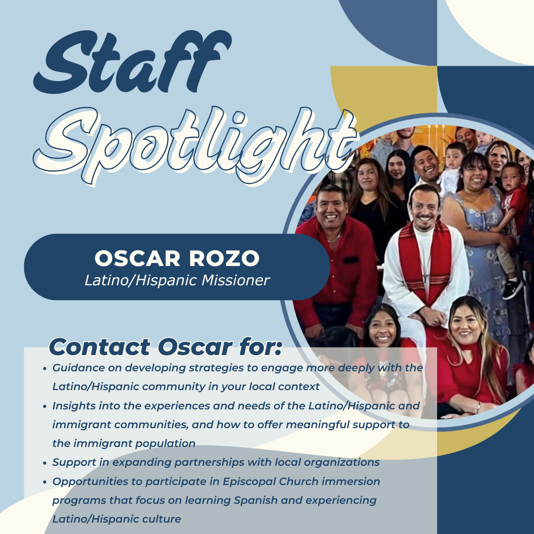 As the Diocesan Missioner for Latino/Hispanic Ministries, I provide oversight and support to four parishes actively serving the Latino/Hispanic community with resources, pastoral care, and spiritual formation. I also lead the Multicultural Center at the Episcopal Church of the Epiphany in Newton, NC.