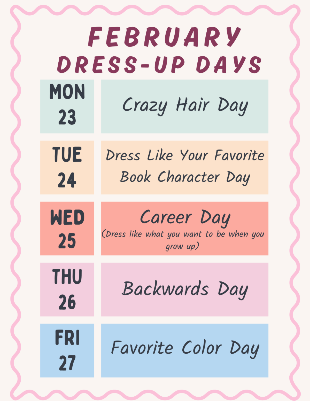 Feb 23–27: Book Fair & Dress-Up Days