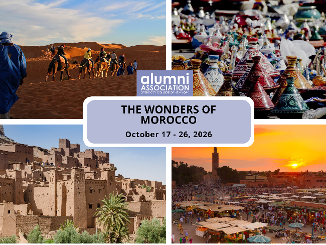 | | Also note if you are interested in joining us from out of town please check out the gala event page, for some local hotel group rate options. We want to see you! www.ccnyalumni.org/gala145 | | Announcing AACCNY in Morocco | | | October 17 - 26, 2026