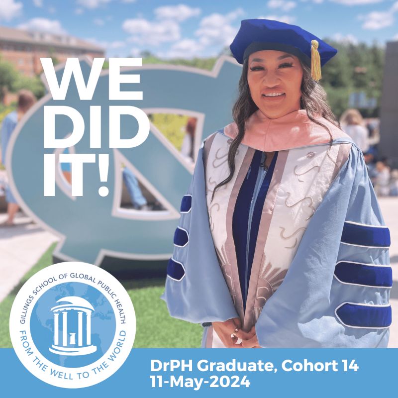 After a nearly seven-year journey, Racquel graduated with her Doctor of Public Health (DrPH) degree from the University of North Carolina Gillings School of Public Health in May 2024. Proud to be a 1st generation American, a woman of color in STEM, and of Filipino ancestry, Racquel added a stole to her regalia, handmade by Philippine artisans with embroidery that is deeply symbolic of both her ancestry and commitment to community.