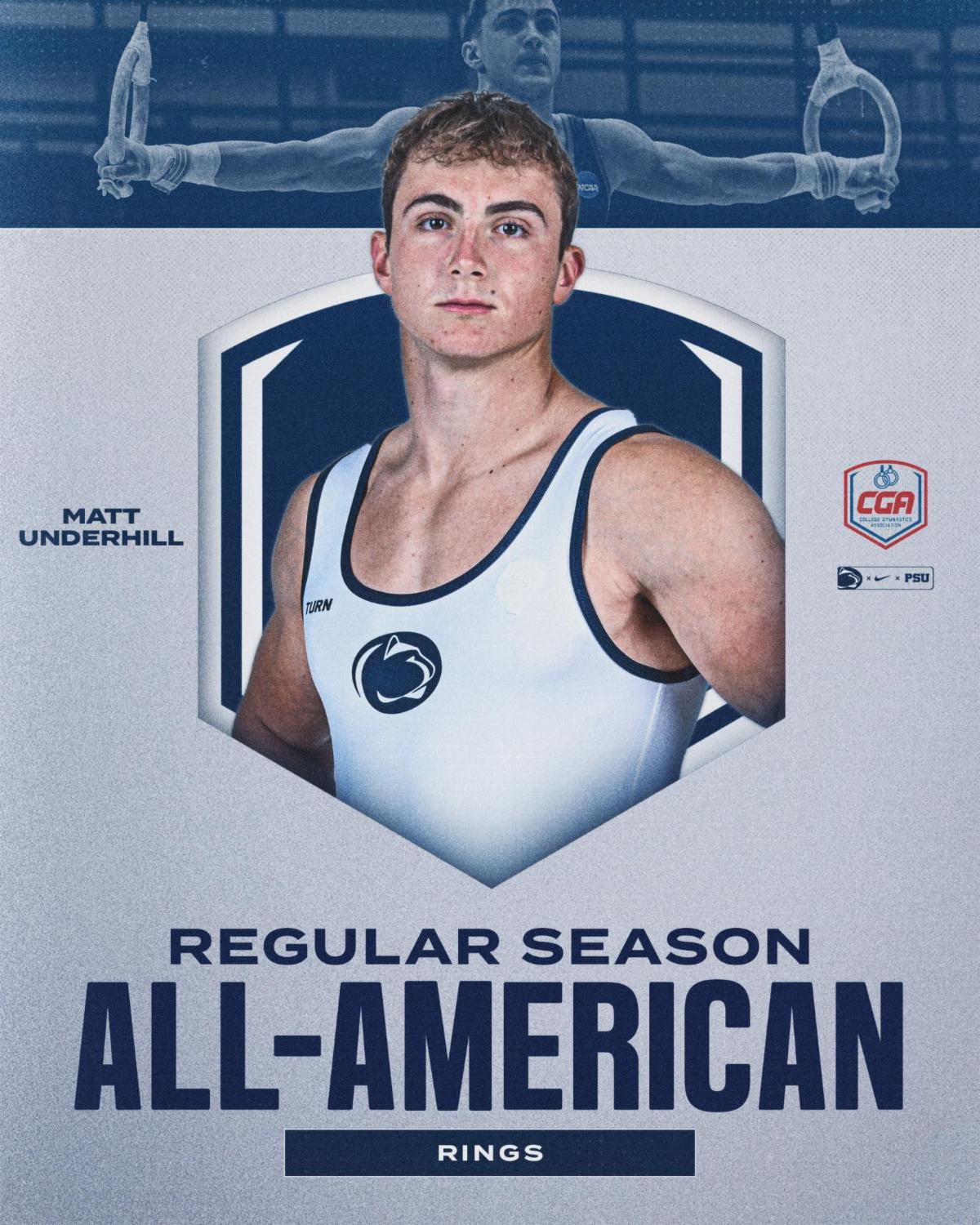 Matt had an outstanding season with the Penn State Men’s Gymnastics team, contributing significantly to its best finish at the NCAA Championship Finals in almost a decade. Competing on the rings, he was a crucial part of Penn State's achievement. During the regular season, Matt earned his second All-American honor and was instrumental in the team winning its first-ever Big Ten Regular Season Championship, marking a historic milestone for the Program.