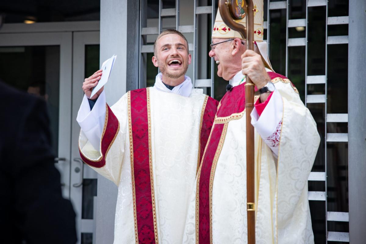 Deacon Nick will celebrate his first Mass on Sunday, June 8 at 11:00 a.m. at Saint Matthew Cathedral and Deacon Andy will preside over his first Mass, also on Sunday, June 8, at 12 Noon at Saint Pius X in Granger. All are invited to attend.