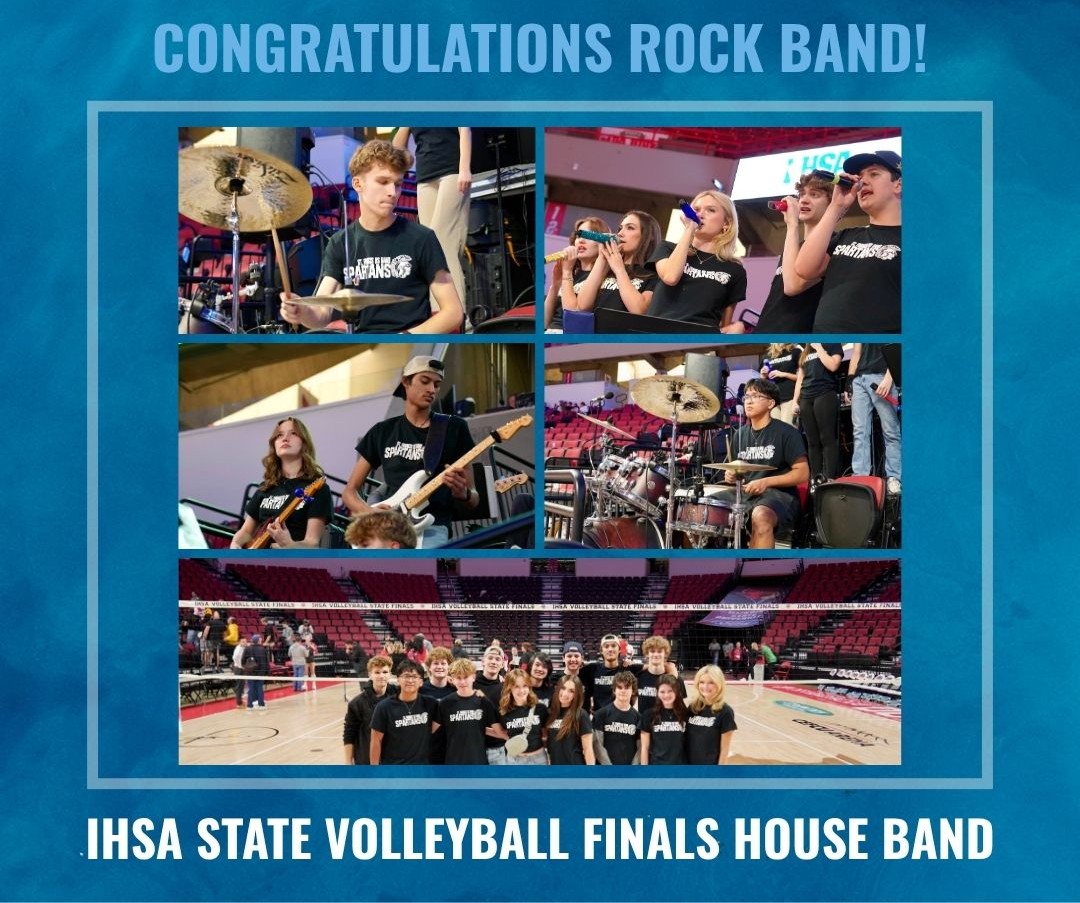 | | The Rock Band rocked the ISU Redbird Arena last weekend - they were the House Band at the IHSA State Finals for Girls Volleyball! Way to represent! #SpartanProud Photos courtesy Laura Gnorski | Congratulations Girls Cross Country for placing 2nd at the IHSA State Girls Cross Country Meet! And a special shout-out to Elena M. '27 (8th Place) and Erin H. '27 (11th Place) on their All-State Placements. Of special note, two of the coaches are SFHS Alumni: Head Coach Jason Accardi '96 and Shannon Moran '18. | | | | |
