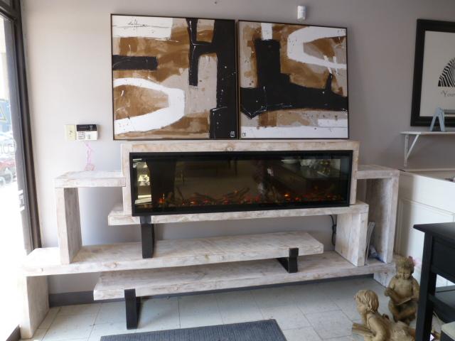 Create that cozy feeling with the touch of a button!--This 60" Dimplex linear, electric fireplace with custom surround not only provides warmth when desired, it provides a focal point for interesting decor pieces or a television set.