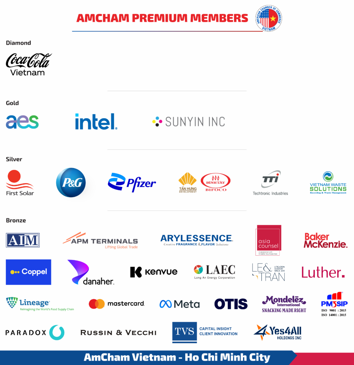 Premium Membership offers the opportunity for qualified companies to highlight your status as business leaders and your strategic support for AmCham Vietnam’s mission and programs. Premium Membership offers a range of discounts, benefits, and exclusive VIP access. Customized packages are available. To learn more, see LINK or contact Office Manager Cindy Tran at cindy.tran@amchamvietnam.com.