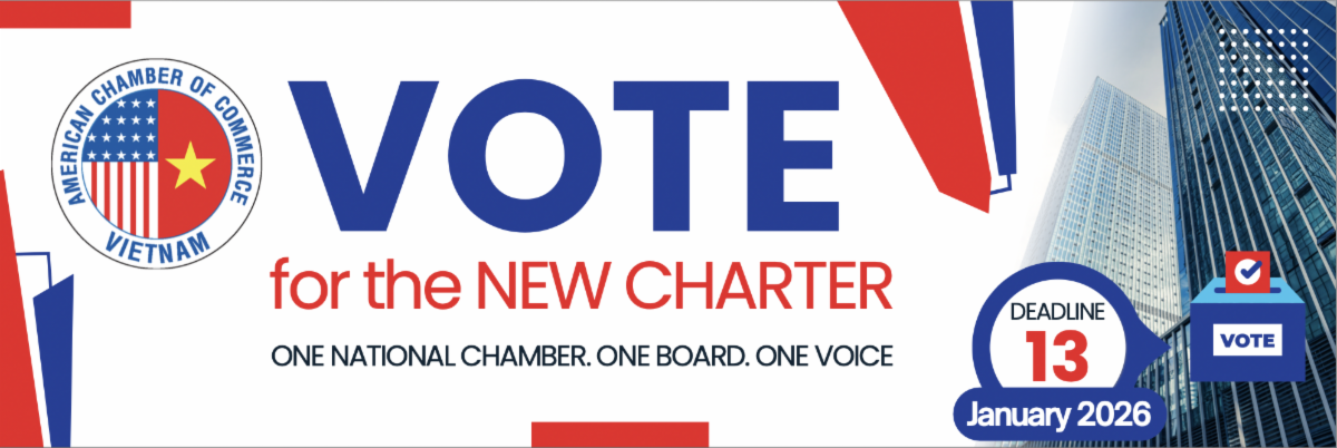 Your vote helps shape AmCham Vietnam's future! On December 10, the Hanoi and Ho Chi Minh City Boards unanimously approved a proposed unified AmCham Vietnam Charter. If adopted, it will merge both chapters into a single national chamber with one National Board, with a transition planned through mid-2026.