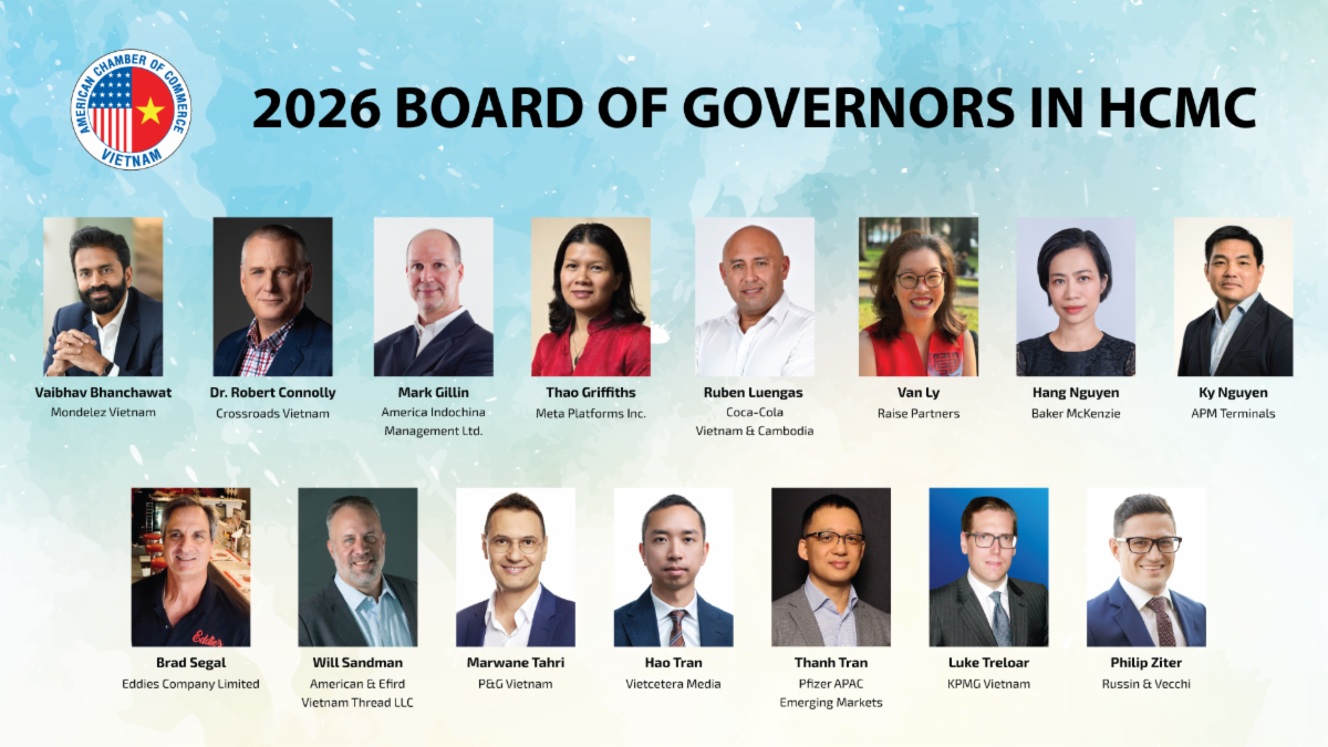 We would also like to express our deep appreciation to our departing Governors—Mr. Jesse Boone, Ms. Thanh Le, Mr. Michael Nguyen, and Mr. LS Tan—for their commitment, leadership, and valuable contributions to AmCham.