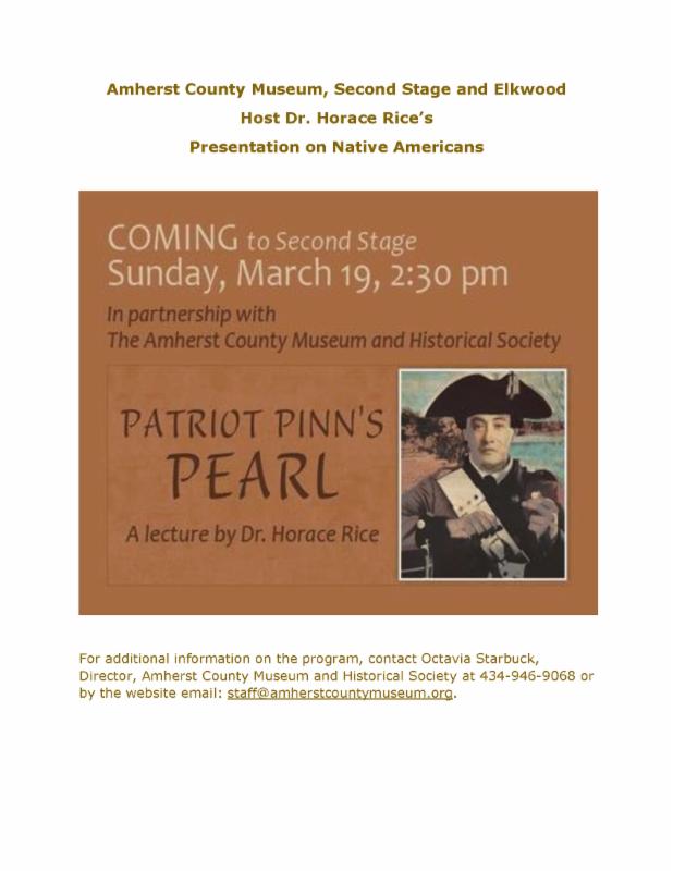 For additional information contact Octavia Starbuck, Director, Amherst County Museum and Historical Society at 434-946-9068 or by the website email: staff@amherstcountymuseum.org.