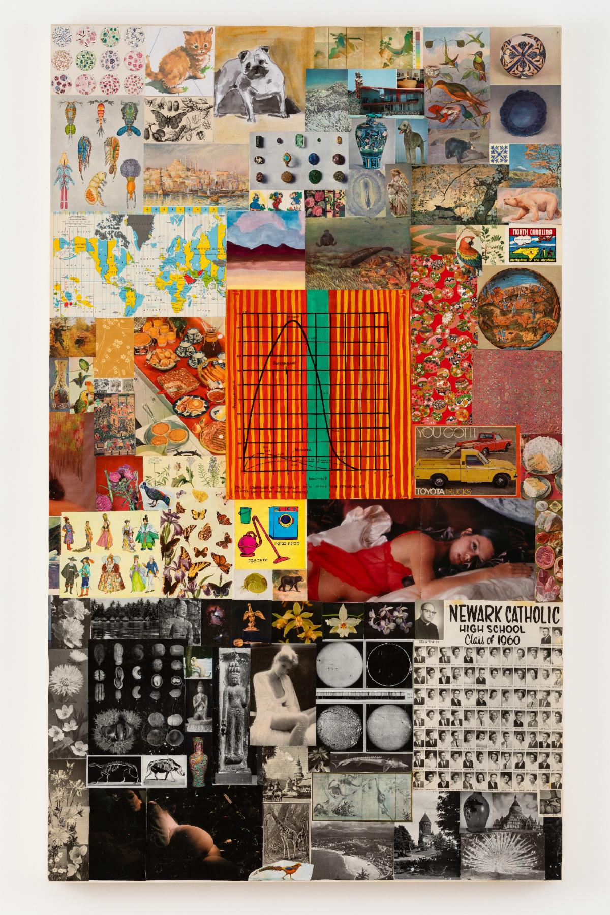 Her collages, including Farrah I, Farrah II, and Farrah III, layer vintage media, childhood memorabilia, and historical references, deconstructing the ways in which identity, femininity, and Western narratives have been shaped by visual culture. Drawing from Victorian encyclopedias, 1960s and 70s magazines, and personal artifacts, Pachowicz questions how past biases, consumerism, and nostalgia intertwine to influence our understanding of history and selfhood.