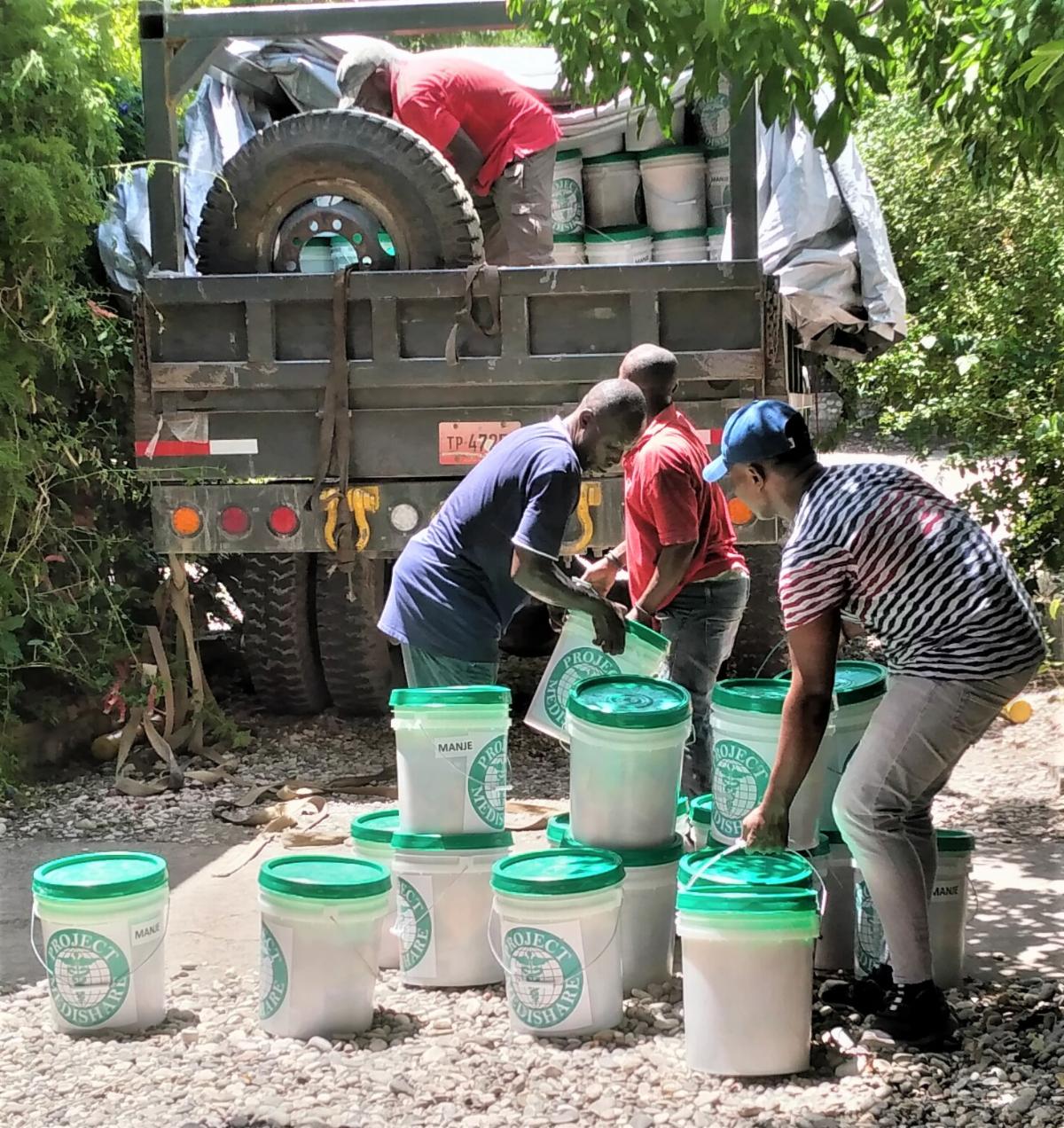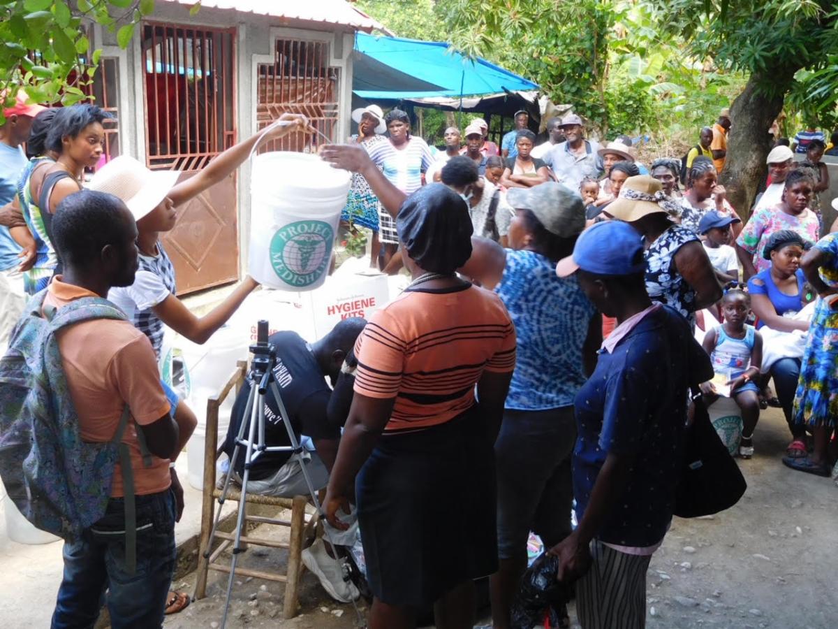 We continue to put together hygiene and food kits to send to affected families. These kits contain essential items, such as water purification tablets, soap, rice, beans and pasta.