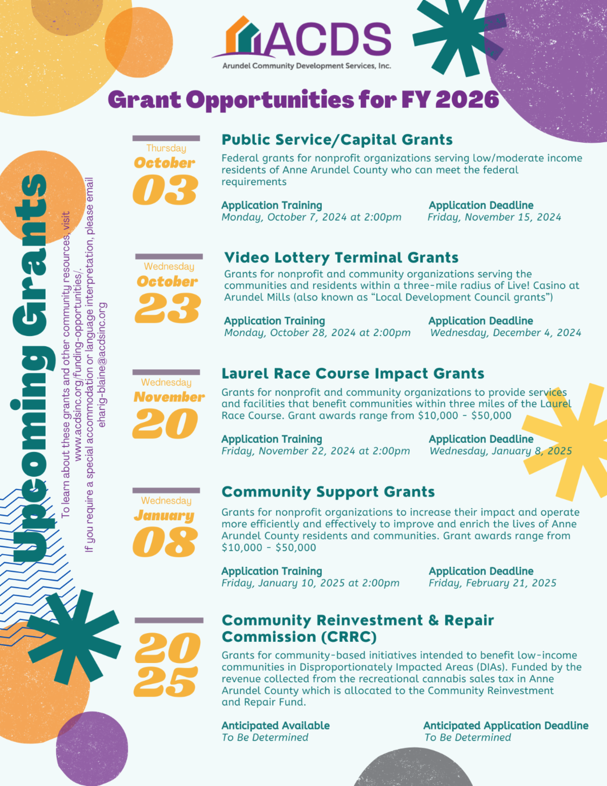 Consistent with the Americans with Disabilities Act, Anne Arundel County Government is committed to providing reasonable accommodations to qualified individuals with disabilities. Each county sponsored event includes information about how to request an ADA Accommodation. This E-Blast is available in an alternate format upon request. | | | | |