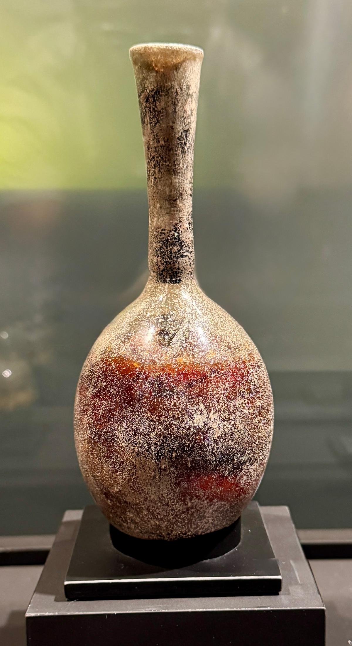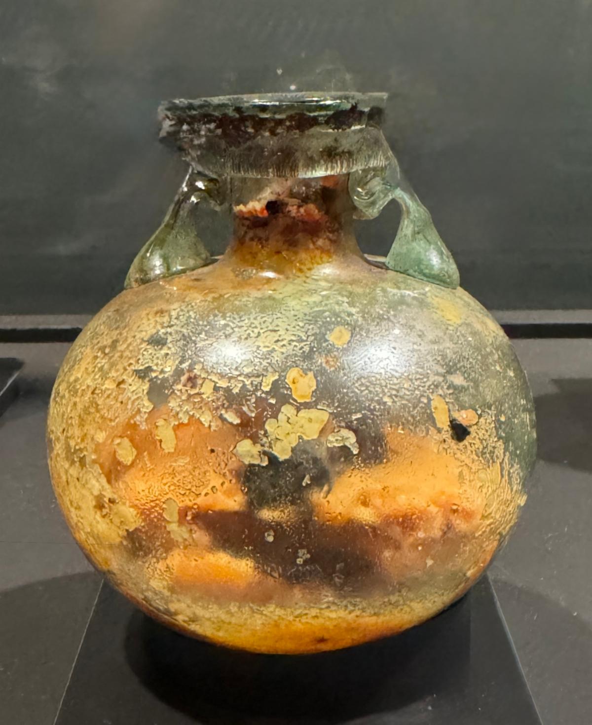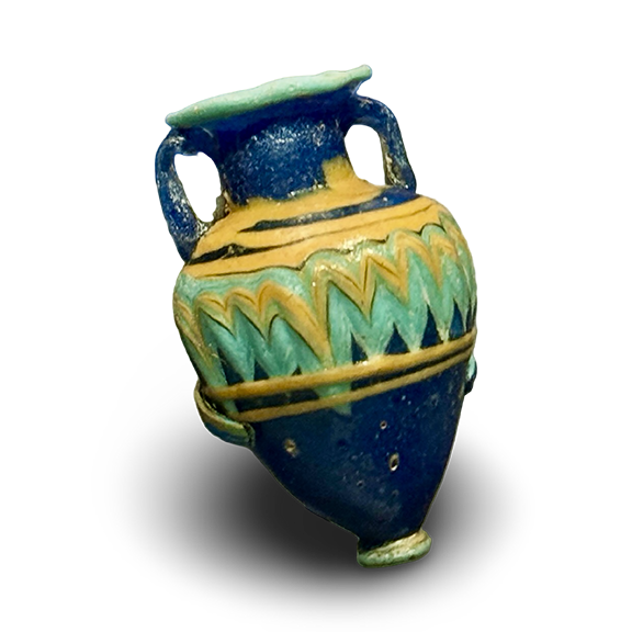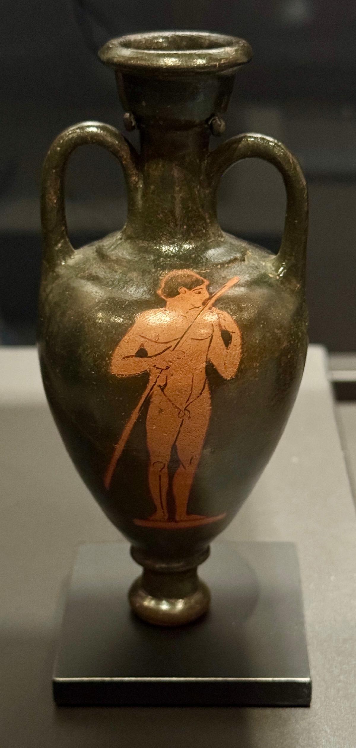This miniature amphora-shaped vessel would have had a stopper and a glass rod for applying the fragrance.