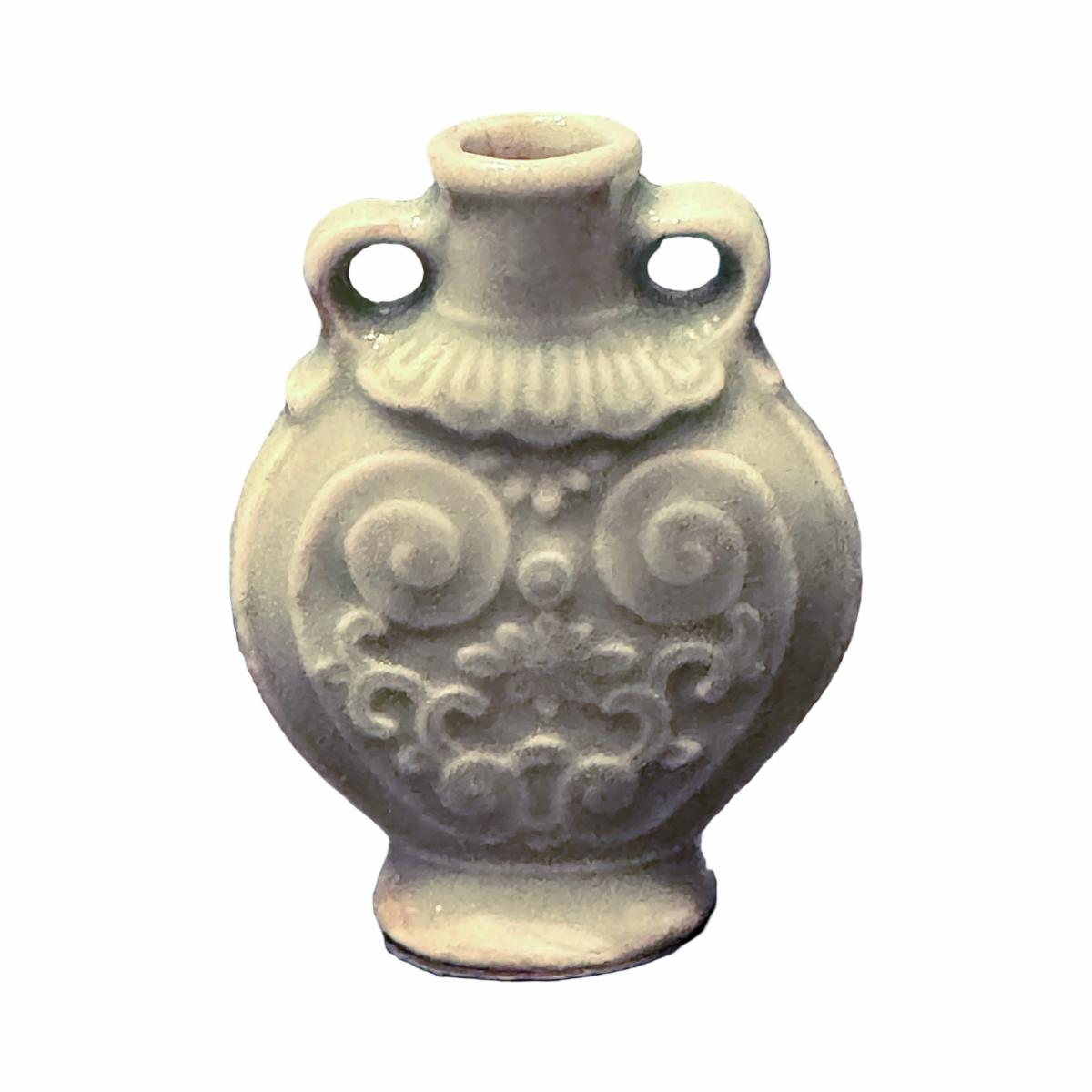 Celadon glaze is a distintive color and was valued in ancient China due to its resemblance to jade. Celadon ceramics have been exported since the Tang Dynasty (618-906 CE) and are popular worldwide. This embossed vessel is an extremely rare example of its type.