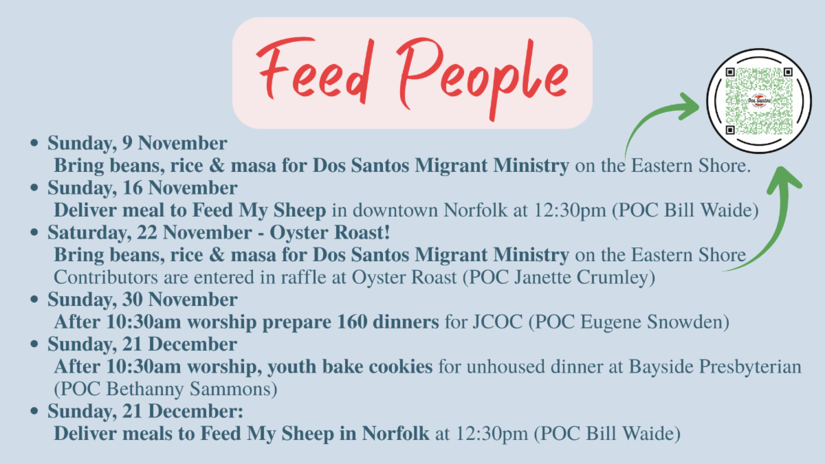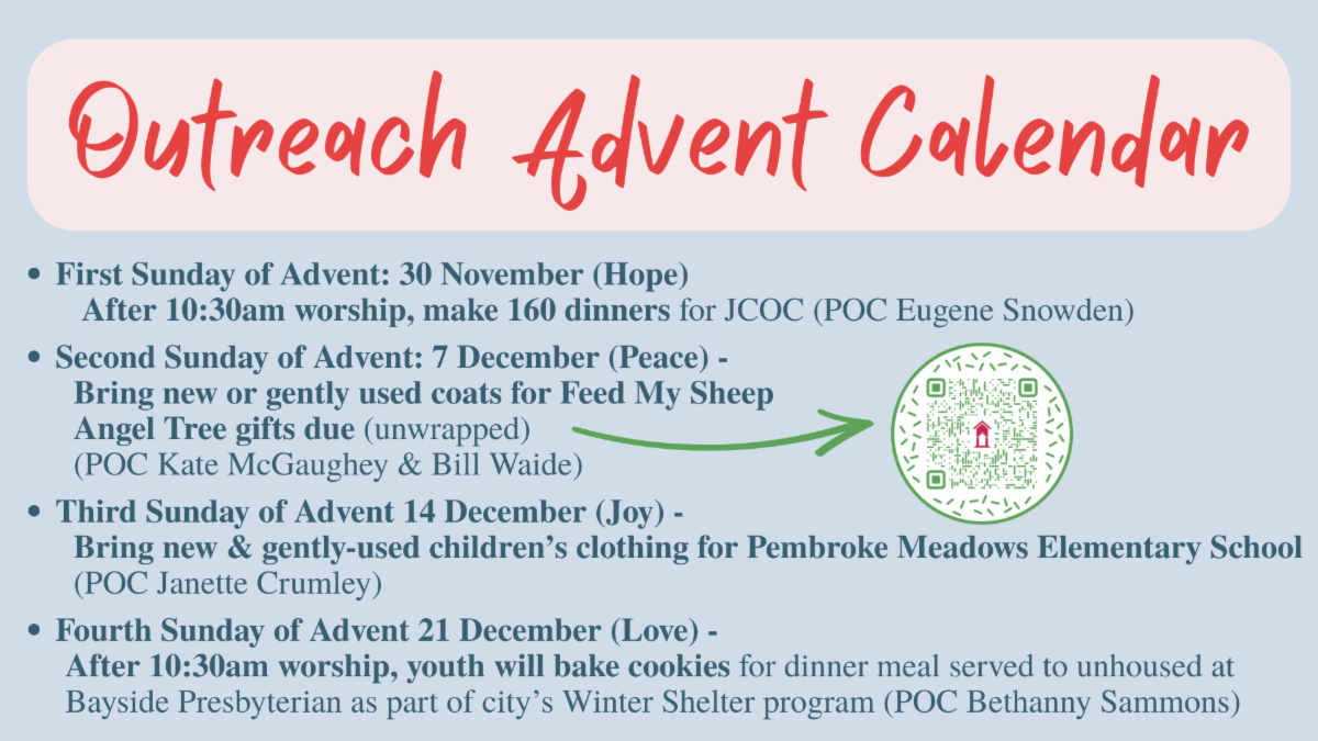 Your Outreach Commission has multiple opportunities in which you can participate, beginning this Sunday, 9 November, throughout Advent.