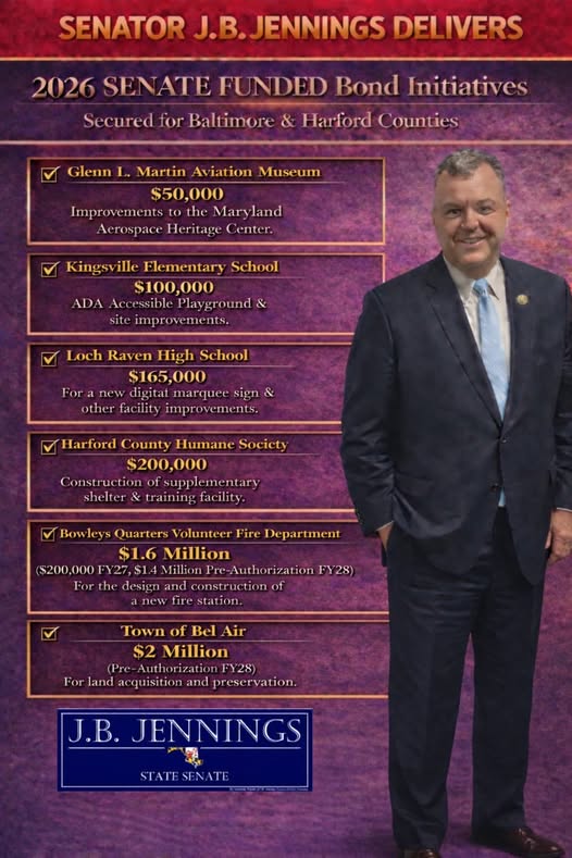 I’m proud to report that I secured Senate funding for key projects across Legislative District 7 - Baltimore & Harford Counties.