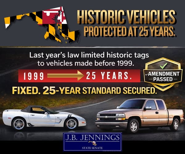 I am proud to share that my amendment regarding Historic Tags did pass. It allows vehicles aged 25 years or older to qualify for historic tags. While I also introduced separate legislation to grandfather in vehicles previously registered as historic, that bill has not yet been voted on in committee.