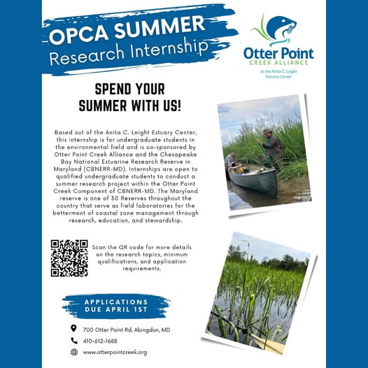 If you're looking for an internship opportunity, Otter Point Creek Alliance is seeking a summer research intern. Additional opportunities are available on the website, including programs, volunteer, and research opportunities.