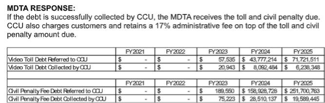 The bill hasn't been brought to a vote in Committee, but should it miraculously pass today, then survive a vote in both sessions, this would change the lives of many Marylanders. The current system sends toll revenue back to MDTA, pays a 17% collection fee to CCU, and funnels the rest into the General Fund. Maryland should not rely on punitive fees as a revenue stream. We need a system that is fair, transparent, and focused on getting people back on track, not pushing them further behind.