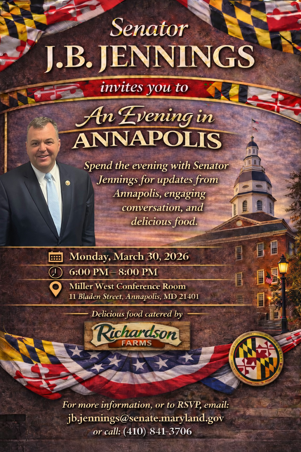 | | I hope you'll join me for my Evening in Annapolis on March 30, 2026 from 6:00 p.m. to 8:00 p.m. with an evening session afterward, which you are welcome to enjoy. | | |