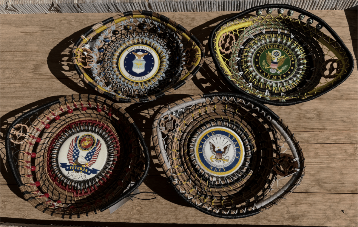 ------Corinne Babcock, owner of chamber member Corie Sue's Creations, announces a special Memorial Day Sale on pine needle baskets with military symbol for the 4 services (Army, Air Force, Marine Corps, and Navy) at the La Encantada Southern Arizona Arts Guild (SAAG) Gallery (2905 E. Skyline Dr) through the end of May. The baskets are discounted 20% for this limited time only.