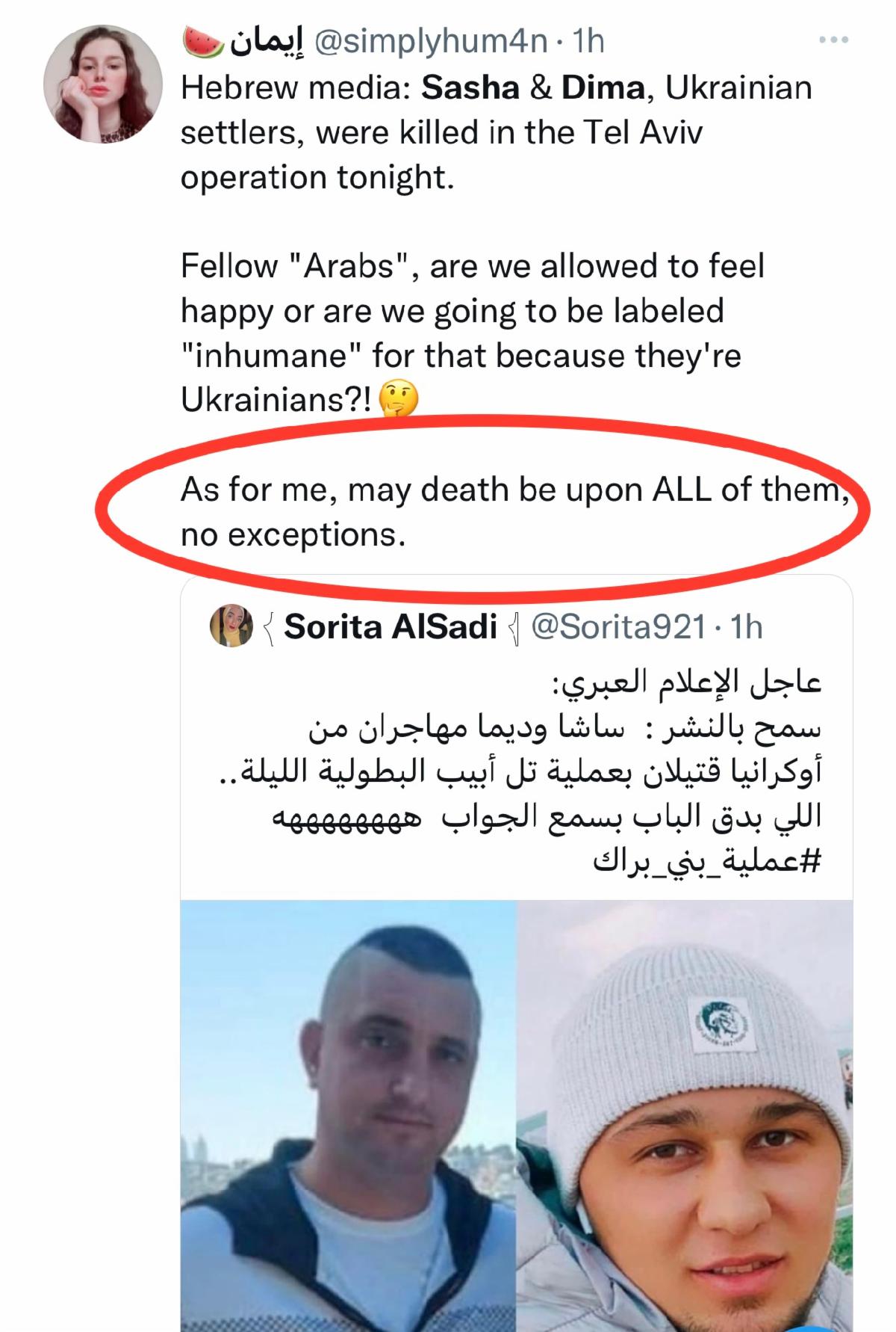 This was not the first time Alami expressed positive sentiment toward the murdering of Israelis, specifically Jews. Earlier this year, in response to news about two IDF officers killed in a friendly-fire incident, Alami tweeted an image of balloons and party streamers with the caption "OFFICER DOWN!"