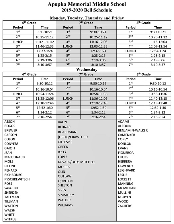 Apopka Memorial Middle| Dr. Kelly Pelletier, Principal | 407.884.2208 |