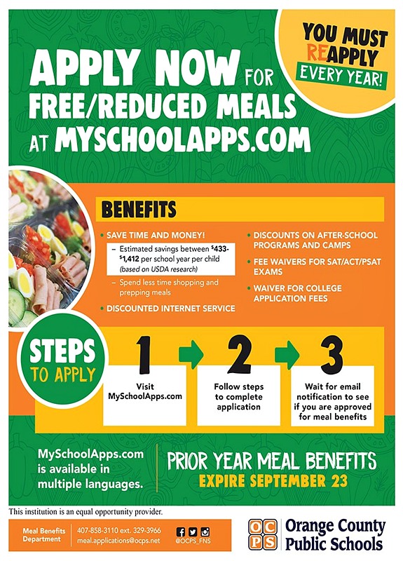 If you need help with this website or would prefer a paper copy of the application, just come into the office and we will help you apply. Your benefits from last school year will be good until September 23rd.