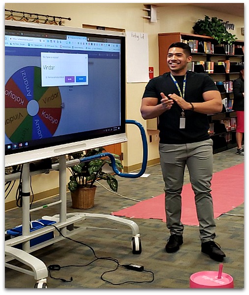 Ms. Jolly is excited to find out which House she will belong to as she approaches the House wheel. Please click here to learn more about the House system at AMMS.