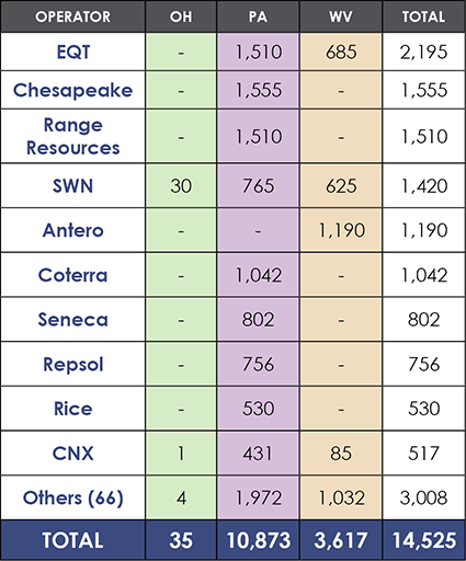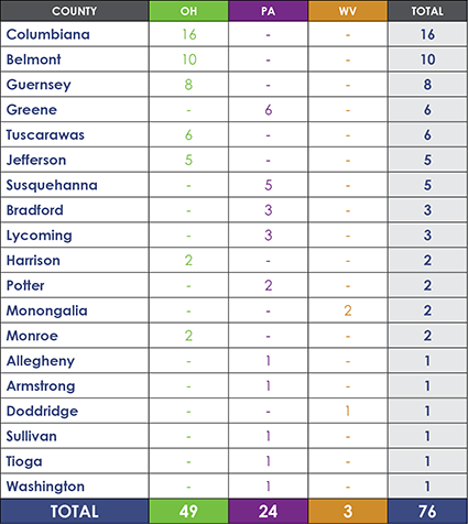 - A summary of all wells in the Appalachian Basin by state, county, and operator.
