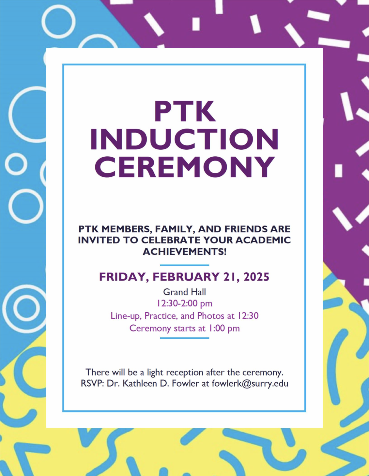To RSVP, e-mail Dr. Kathleen D. Fowler, PTK Advisor, at fowlerk@surry.edu.