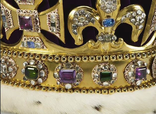 On Saturday, King Charles III of England will be crowned, with the 360-year-old St. Edward’s Crown. A massive piece, frame made of solid gold (22 karat), and set with 444 gemstones, including dozens of colorless topaz, giving the appearance of diamond – are there any diamond? Check the list (in the Daily Mail).