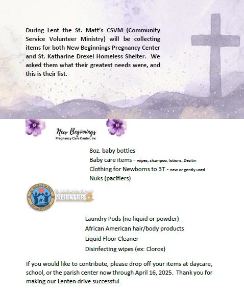 - 9:00 am - St. Matthew's