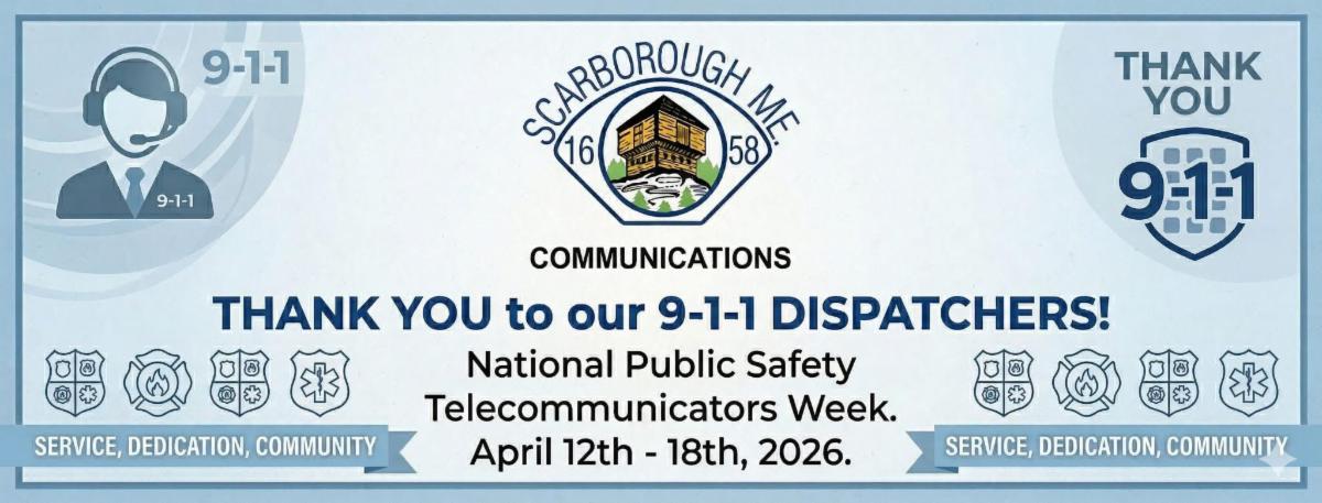 Thank you to the dedicated and committed dispatchers of the Scarborough Emergency Communications Center, who provide 9-1-1 answering for Scarborough, Old Orchard Beach, and Buxton. They also provide full dispatching services for Scarborough and Old Orchard Beach Police, Fire, and EMS.