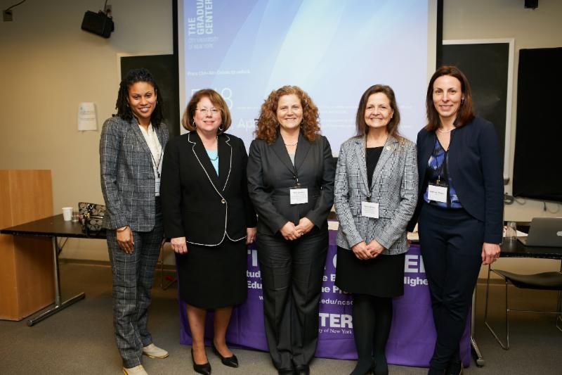 Panelists on Racial and Economic Equity in Higher Education with (left to right) Sara Goldrick-Rab, Temple University, Sameer Gadkaree, The Joyce Foundation, Catharine Bond Hill, Ithaka S+R and former President, Vassar College, and Mark Huelsman, Demos.