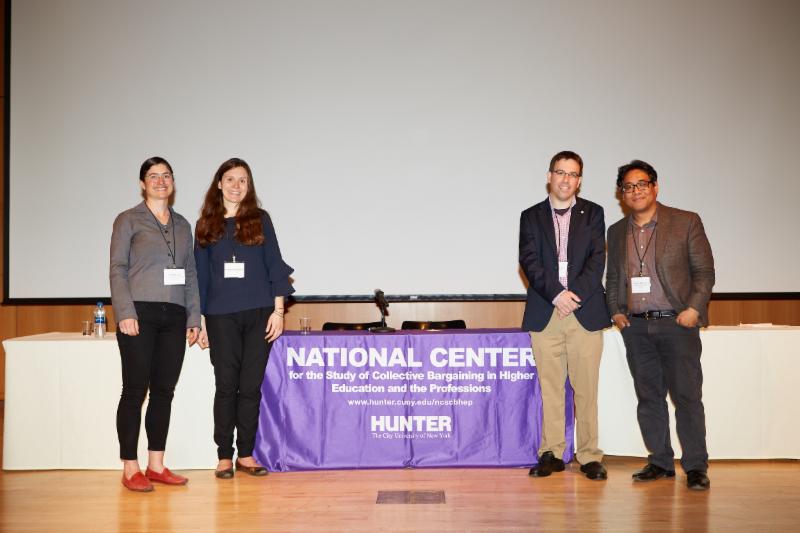 Speakers from panel Reaching First Graduate Student Contracts at Brandeis and Tufts (left to right) Lisa Lynch, Brandeis University, Lilli Palacios-Baldwin, Tufts University, Desiree Murphy, Morgan, Brown & Joy, LLP, and Matt Dauphin, SEIU.