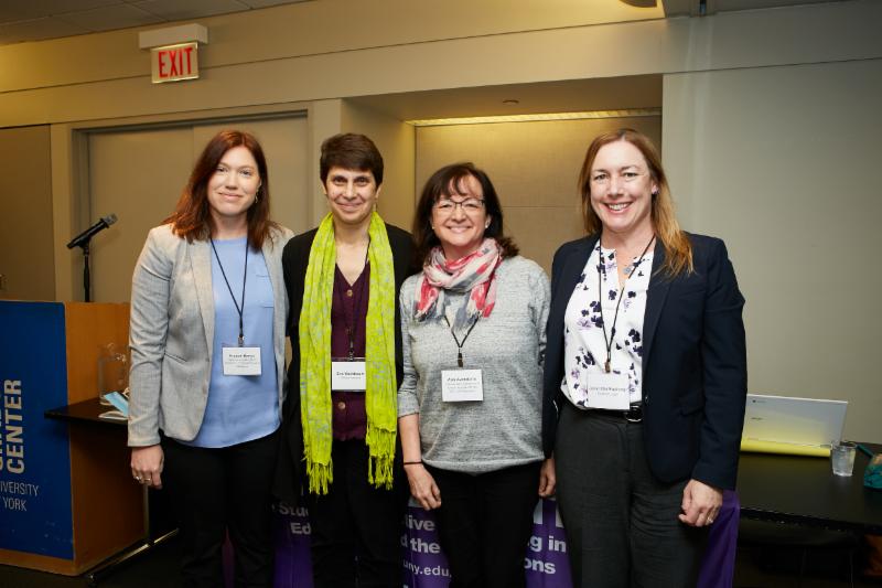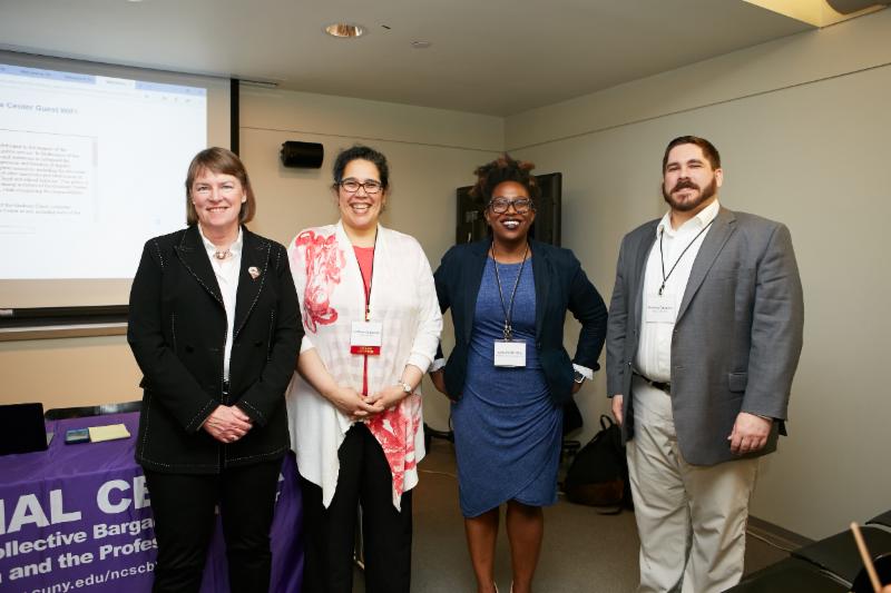Speakers from panel on Sexual Harassment in Higher Education and Developing Labor-Management Solutions: (left to right) Frazier Benya, National Academies of Sciences, Engineering and Medicine, Eve Weinbaum, UMass Amherst, Ana Avendano, independent scholar and former Assistant to the AFL-CIO President, and Janet Elie Faulkner, Faulkner Legal.