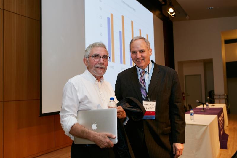 Keynote speaker Paul Krugman and National Center Executive Director William A. Herbert.