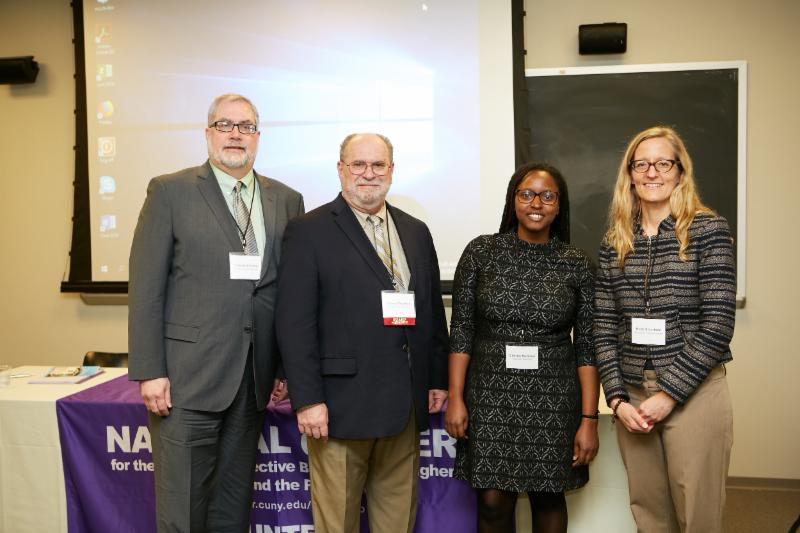 Panelists on Shared Governance and Collective Bargaining following Janus (left to right) Catherine Cleaver, Adelphi University AAUP, Joe Ambash, Fisher & Phillips LLP, Saerom Park, SEIU, and Carl Levine, Levy Ratner, P.C., and Holly Stern, NJIT.