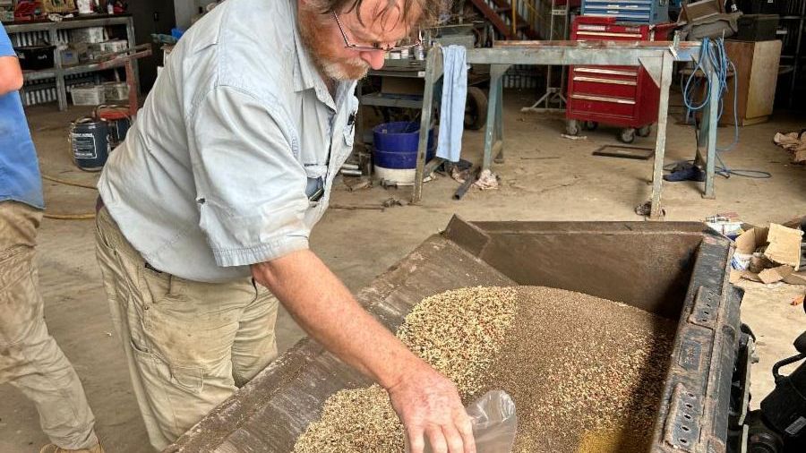 RAPP Alumni member Brett Haselden coating seed in preparation for autumn seeding 2023 | |