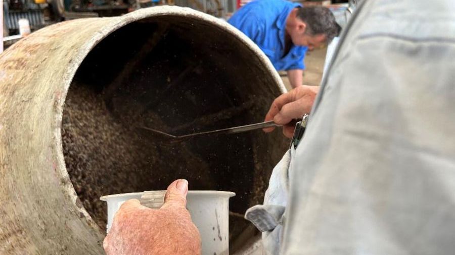 Dairy Farmer Tim Crimp mixing seed | |