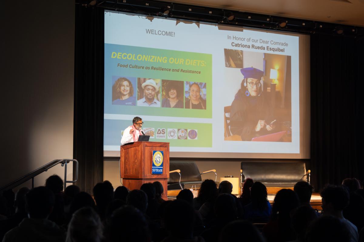 | | Panelists (from left to right): Bryant Terry, Gopal Dayaneni, Samin Nosrat, Reem Assil, and Crystal Wahpepah. | This panel was hosted in memory of College of Ethnic Studies Professor Dr. Catrióna Rueda Esquibel, author of Decolonize Your Diet (with Luz Calvo). She was a long-time educator of the course under the same name here at SFSU. Catrióna passed away unexpectedly in February 2024. May her influence and inspiration live on here at SF State. | | |