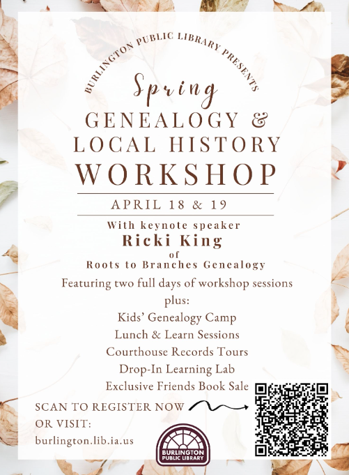 The Spring Genealogy & Local History Workshop at Burlington Public Library is two full days of all things genealogy and local history!