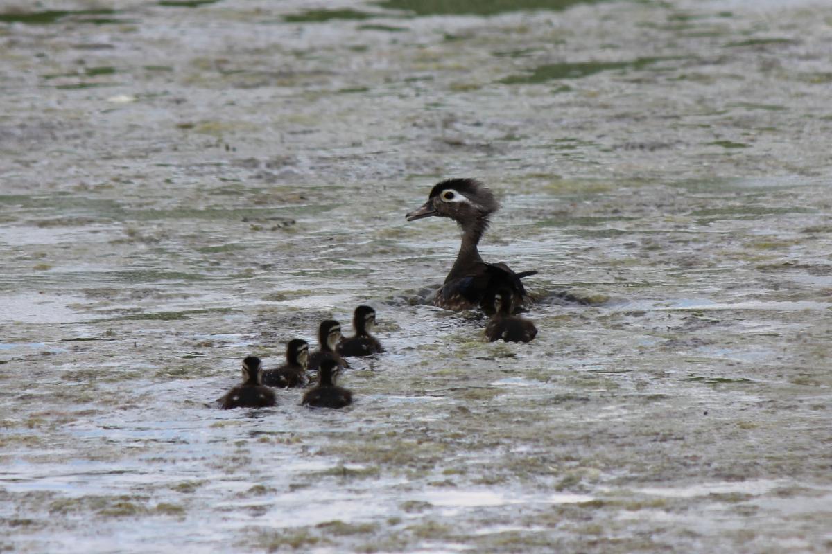 Wood Duck mother and young on created wetlands. (Photo Credit: Pickering Creek Staff)