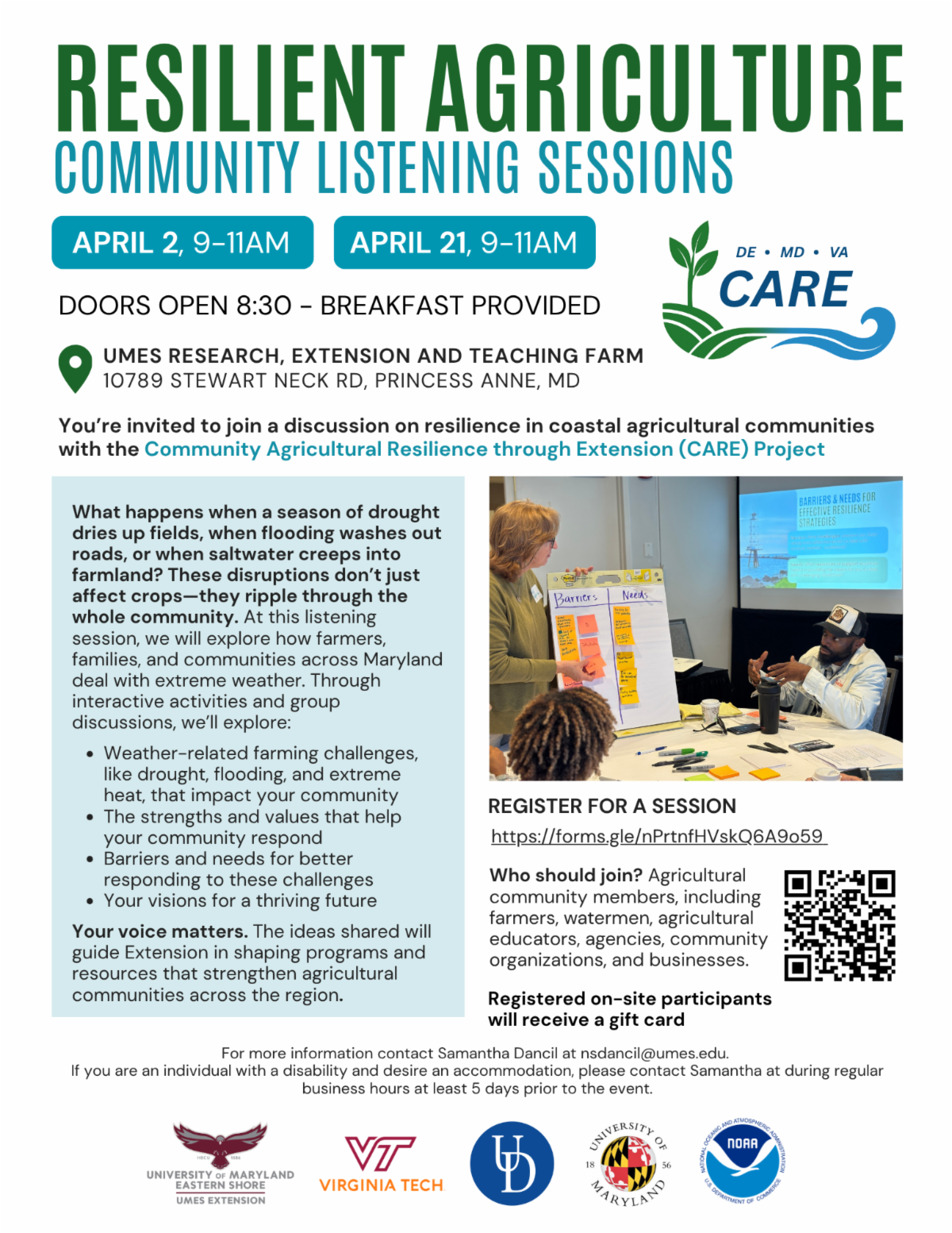Join for a discussion on resilience in coastal agricultural communities with UMES and the Community Agricultural Resilience through extension (CARE) Project.