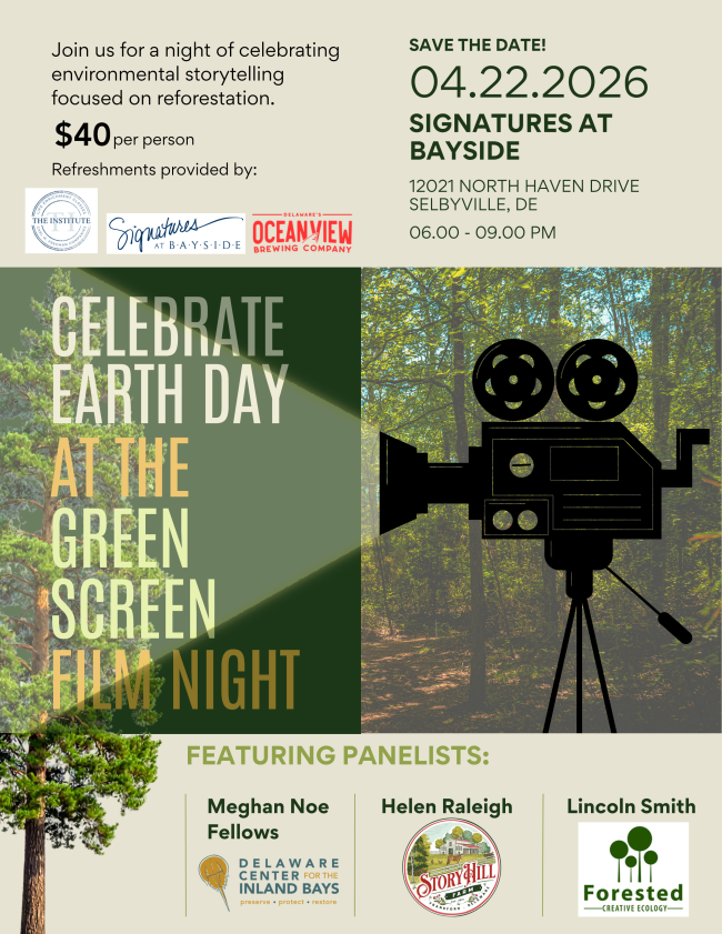 Enjoy a thoughtfully curated program of short documentary films, engaging guest speakers, and delicious food and drinks — all in support of protecting, preserving and restoring the Delaware Inland Bays. Our journey will take us from large-scale reforestation efforts in distant landscapes like Brazil to meaningful conservation work happening right here in our local watershed. You’ll leave inspired and empowered to take action locally.