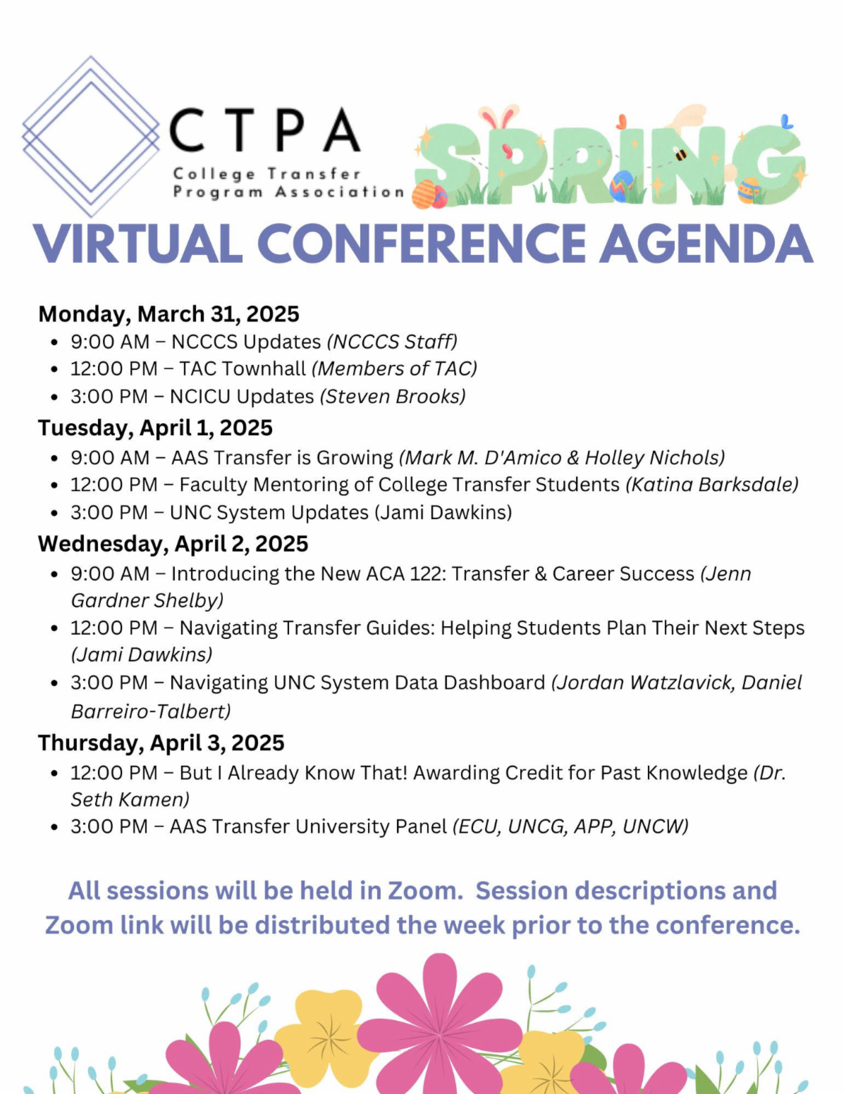 Click here for specific times and locations for sessions.