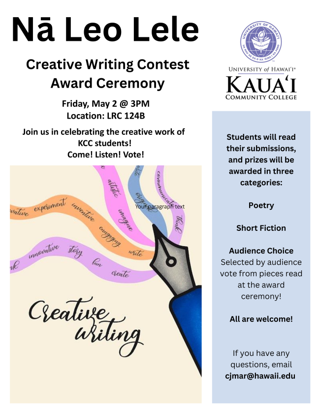 You're invited to the Nā Leo Lele Creative Writing Contest Award Ceremony!